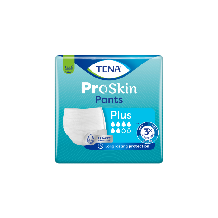TENA ProSkin Pants Plus skyddande trosor skyddar upp till 100 % mot medelsvår och svår urinläckage. De absorberar snabbt vätska och håller huden torr länge, dag som natt. Dessa pålitliga engångsskydd är perfekta för en aktiv livsstil för både kvinnor och män.